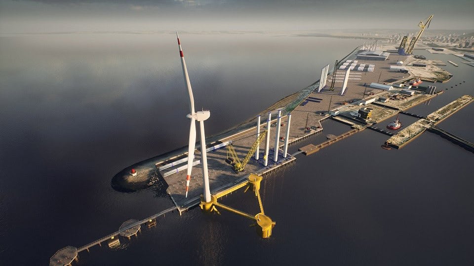 This £40m private investment will see the creation of a bespoke, riverside marine berth capable of accommodating the world’s largest offshore wind installation vessels. The facility will feature a heavy lift capability of up to 100 tonnes per square metre (t/m2), backed up by 35 acres of adjacent land for logistics and marshalling. This will be supplemented by the upgrading of a 140 acre cargo handling site to accommodate lay down; assembly; supply chain and manufacturing opportunities. The total area is equivalent to around 100 full size football pitches. [See downloadable CGI video here: https://vimeo.com/554214247/cf526c091e]