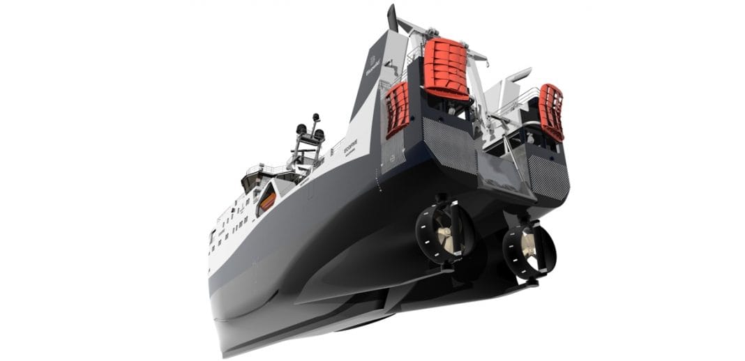 An interdisciplinary development collaboration supported by virtual simulation and modeling at Finnøy led to a twin screw installation with high propeller efficiency. Two large-diameter propellers with associated rudder nozzles placed in separate skegs increase towing force and maneuverability. When the vessel turns, less energy is used to change the direction of the vessel, and thus the towing force is maintained compared to a conventional solution with only one propeller and rudder. Thus, Bluewild’s ambitious requirements for sustainability and reduced energy consumption are met.
