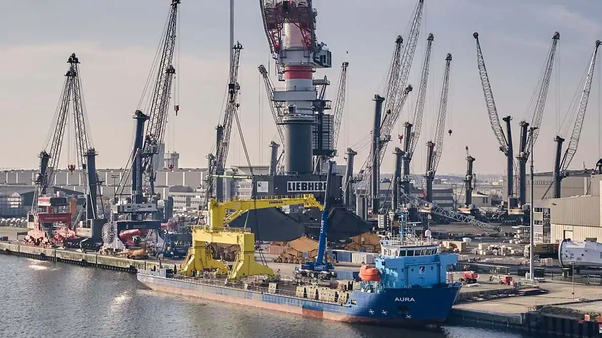 For this project, the LS-C 80 is configured to handle loads of up to 50 tonnes at a maximum outreach of 26.5 metres, ensuring reliable performance in challenging conditions. The fully assembled crane system was loaded in Rostock using Liebherr’s TCC 78000, whose 1,600-tonne lifting capacity enabled safe and efficient mobilisation onto the transport vessel MV Aura for delivery to the Netherlands.