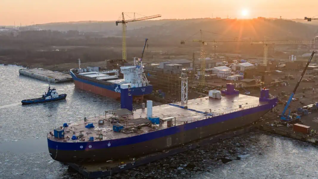 Braving sub-zero temperatures, the Polish yard completed the float-off operation from a nearby dry dock, sending the newly built hull on the next stage of its journey.