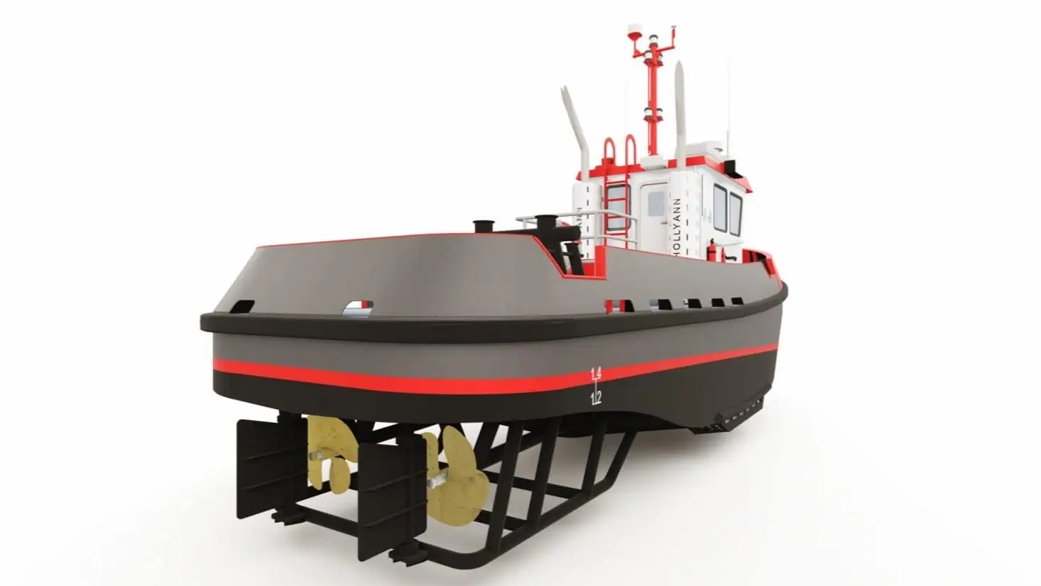 The project focused on delivering a practical, road-transportable tug capable of reaching isolated worksites where marine transport and infrastructure are limited. Developed in collaboration with Forillon Shipyard, HOLLYANN was engineered as a compact yet robust vessel optimised for efficient production and rapid deployment. Delivery is scheduled for June 2026,