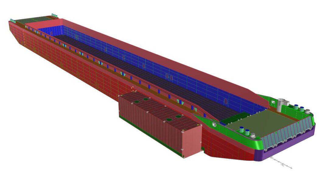 The Lastdrager 29 is specifically developed to meet the unique transport challenges faced by Van der Wees, which has designed the RoRo Pontoon together with Shipbuilding Solutions. Equipped with a (removable) drive-in function, the pontoon enables the seamless loading and unloading of high and heavy cargo, supporting a load capacity of up to 600 tons. Its optimized dimensions ensure efficient navigation through Europe’s inland waterways, even in challenging conditions.