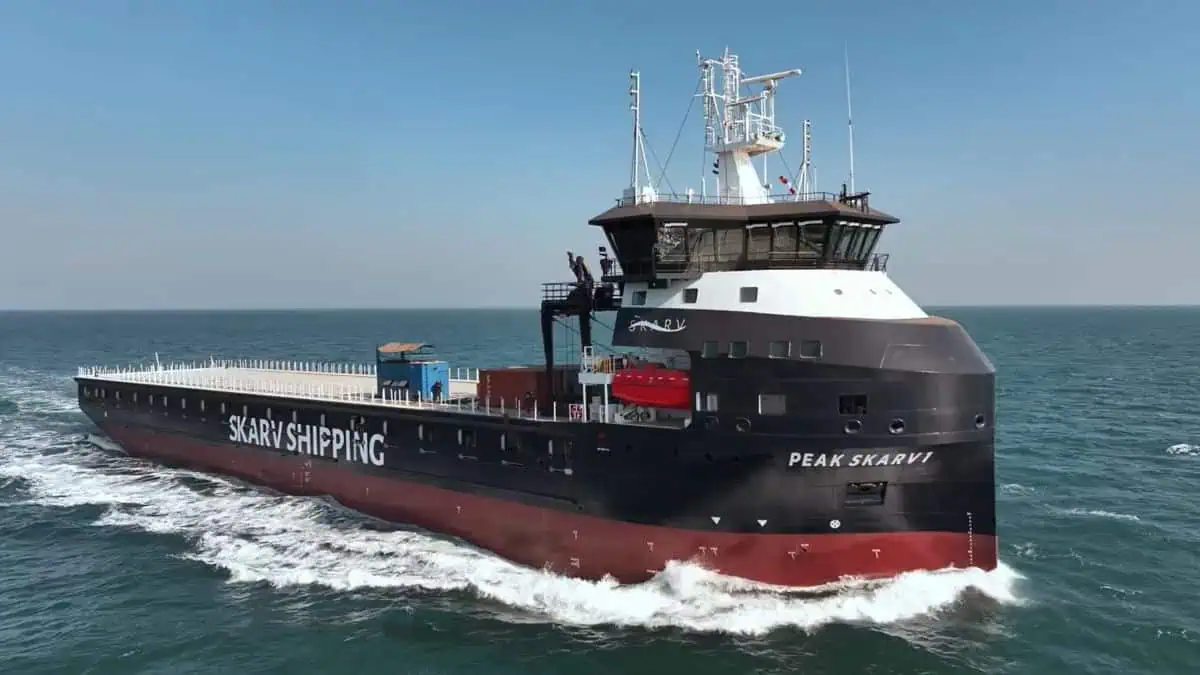 Peak Skarv 1 is the lead vessel in a planned series of four ships. The vessel features a deadweight of 7,900 tonnes, an overall length of 108.2 metres, and a beam of 18.1 metres. The company anticipates the design will offer strong commercial performance in regional shortsea trades.